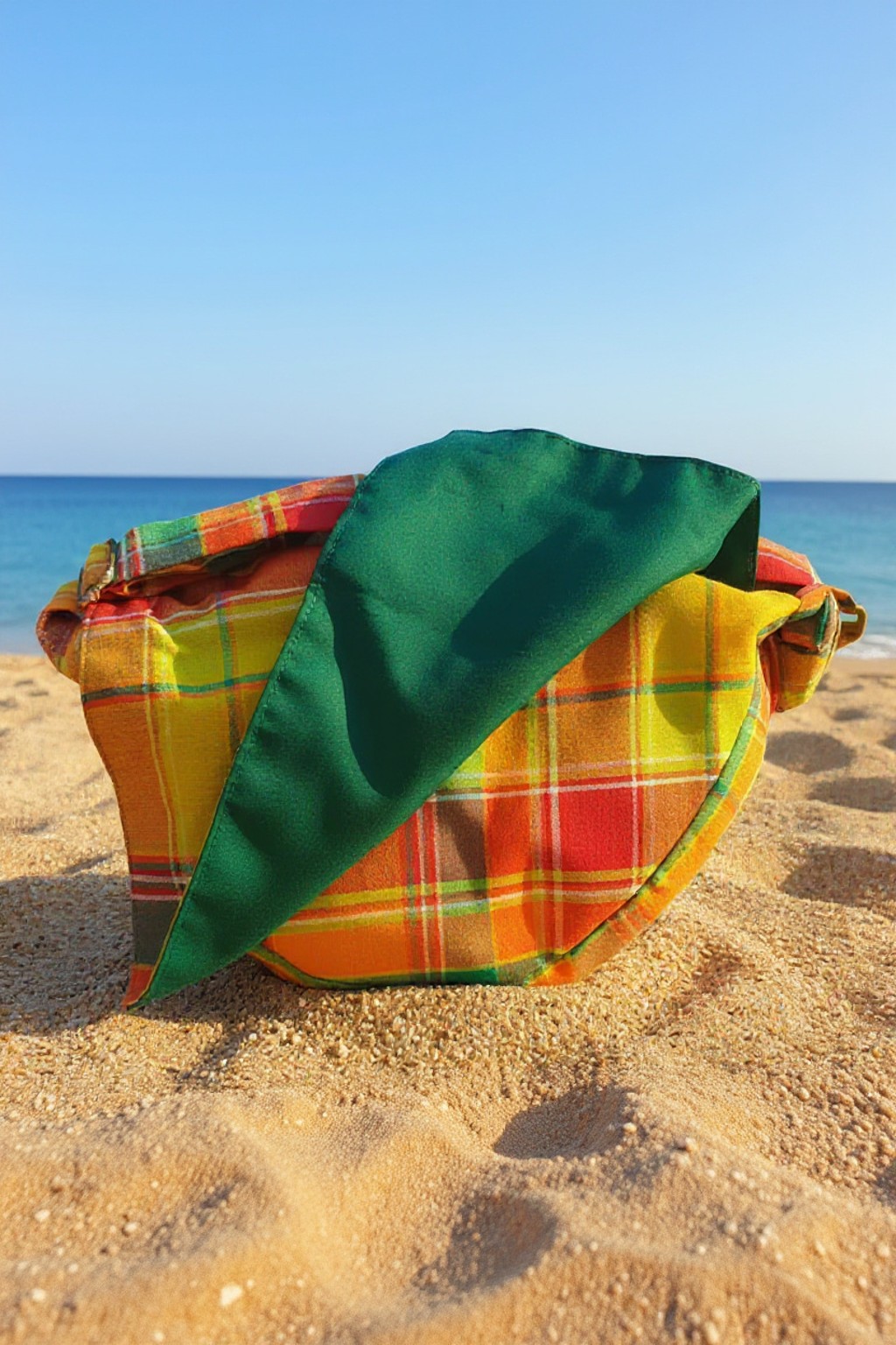 - Couleurs : madras jaune et vert, rabat structurant