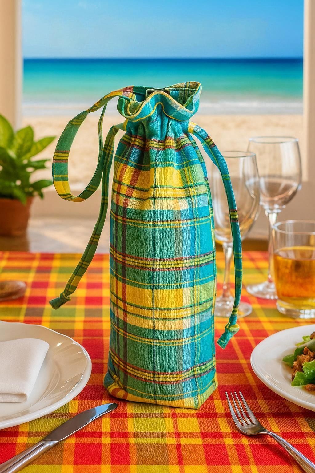 Offrez vos bouteilles de punch ou de vin avec une touche d’élégance artisanale grâce à notre sac de bouteille pour punch ou vin. Confectionné à la main avec soin, chaque pièce est unique et met à l’honneur le tissu madras, emblématique des traditions créoles. Ce sac allie charme, robustesse et authenticité pour sublimer vos cadeaux ou vos présentations de table.