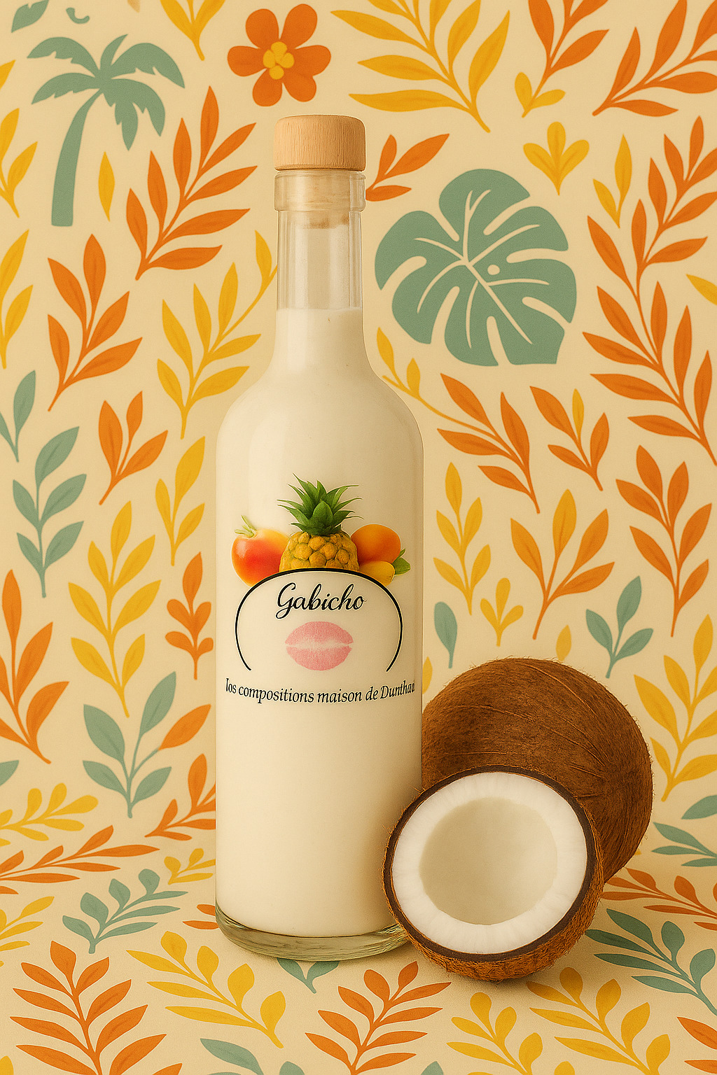 - Ingrédients : rhum 40°, lait de coco, lait, épices (cannelle, muscade)